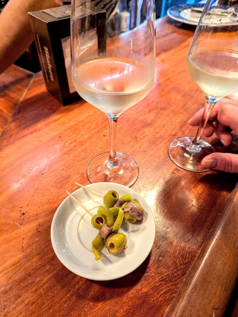 Another solid Gilda we had was at a wine bar in Bilbao’s Casco Viejo neighborhood called Taska Beltz. Along with a fantastic selection of natural wines, you can get a well-balanced Gilda.
