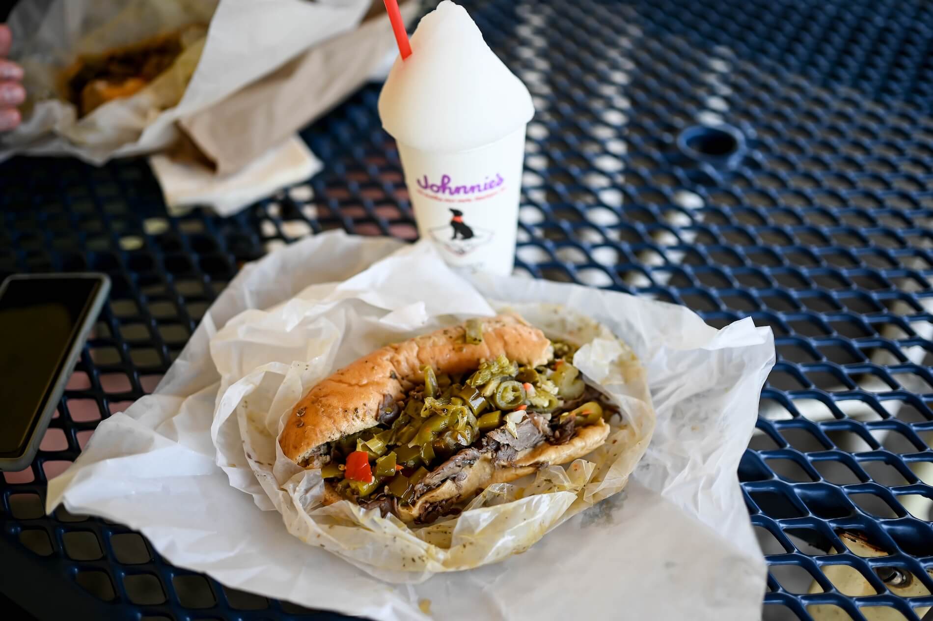 Johnnie’s gives off no frills, old school diner vibes. There are no seats inside here – options are standing counters or taking your beef to go and sitting at one of the picnic benches outside (or making a complete mess in your car).