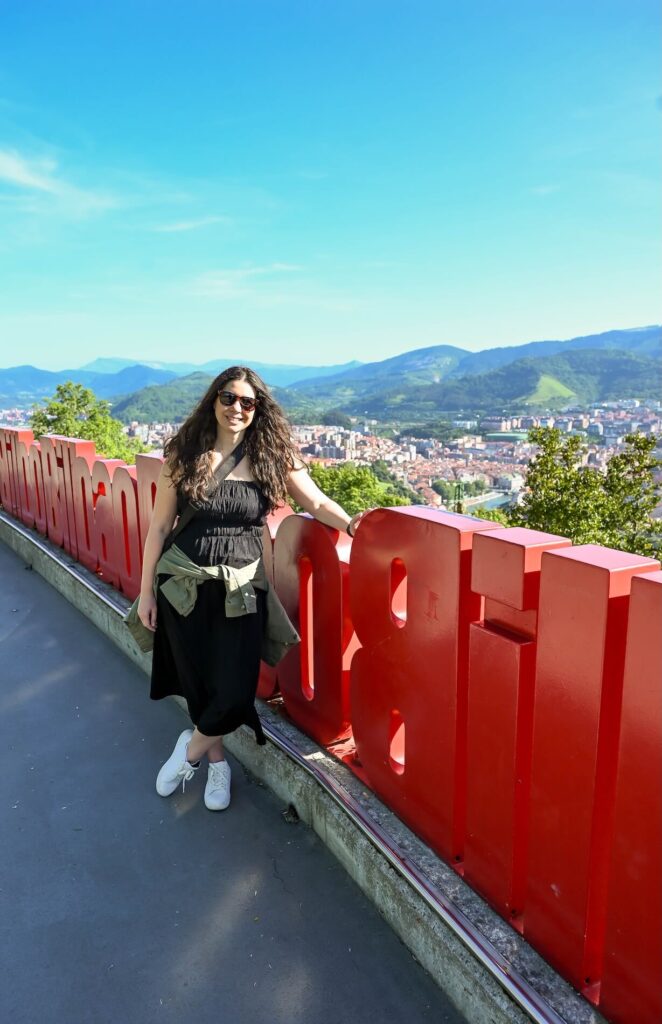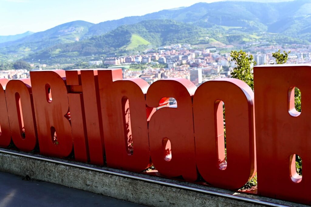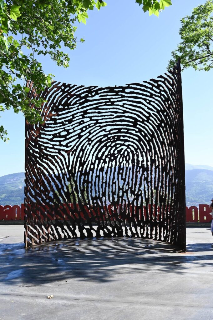 Once at the viewpoint, you’ll see some art installations such as the bright red Bilbao/Bilbo sign and a giant thumbprint art sculpture. Art is everywhere in this city!