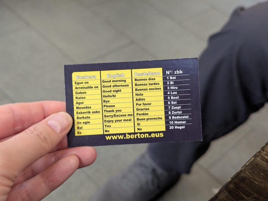 - Help with language barriers: In a foreign country where you don’t speak the native language, having a guide who does will take away so much stress. They may even help you learn a few words to make things easier for the rest of your trip. Our guide Olaia taught us some basic Spanish and Basque words, thanks in part to a handy card we got at Berton.