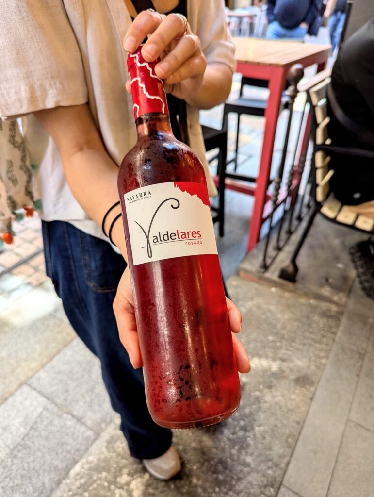The wine pairing at Berton was a Valdelares rosado (rosé) from the nearby Navarra region. This rosé is bold in color and flavor that paired well with both the mushroom and seafood skewer.