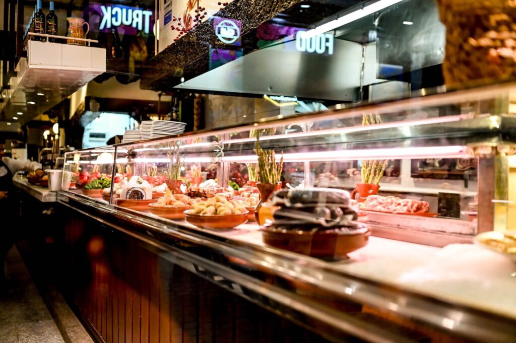Grab a vermouth or a beer and wander around the market trying out tapas and snacks from other vendors like patatas bravas, pintxos, olives, cheese, seafood dishes and more.