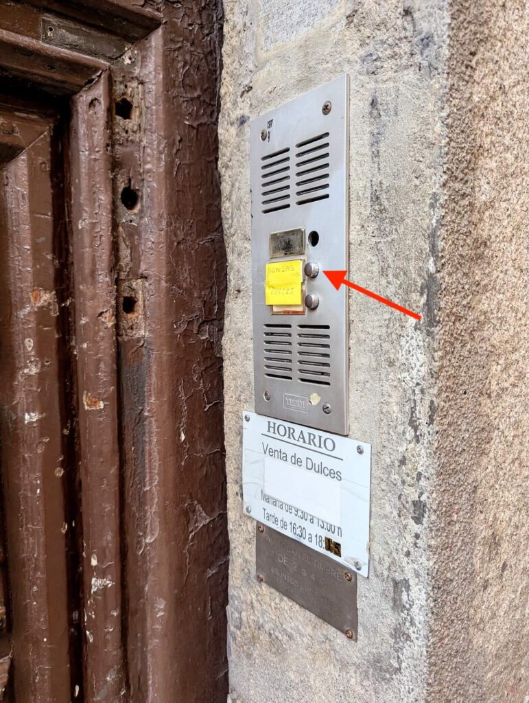 - Locate the button for purchasing cookies marked “dulces” and wait for a nun to answer