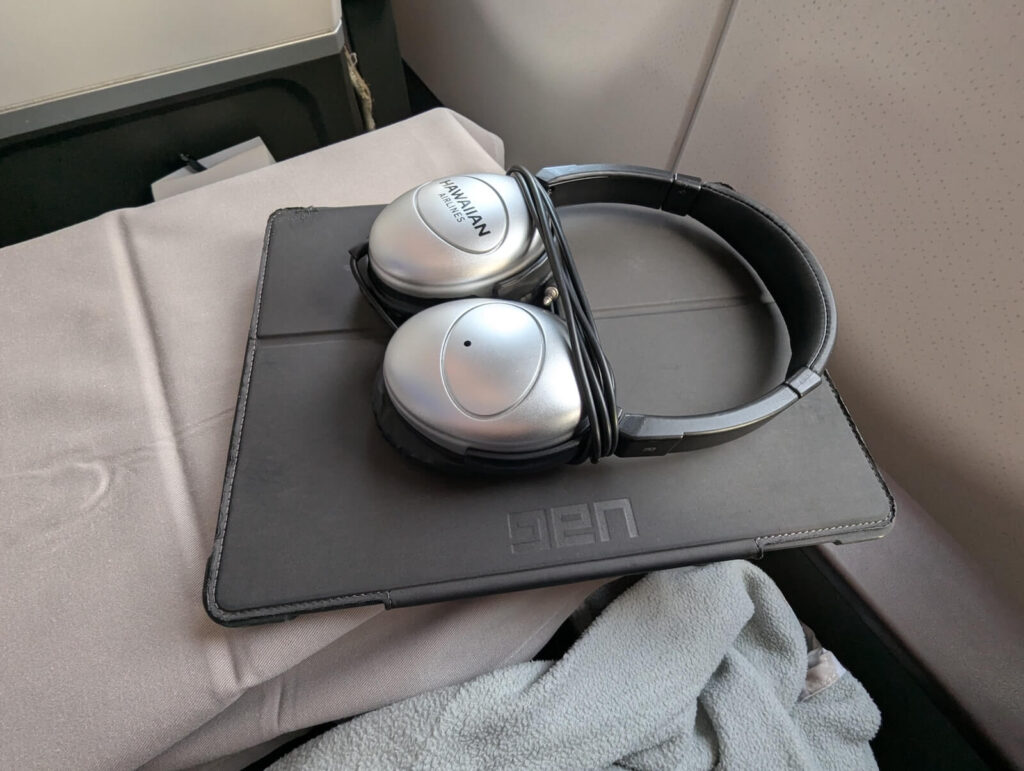 There are no seat back entertainment systems on this plane; however, first class passengers get the use of complimentary iPads and headphones for the flight. It was nice not to have to worry about getting my laptop out and fiddling around with the entertainment.