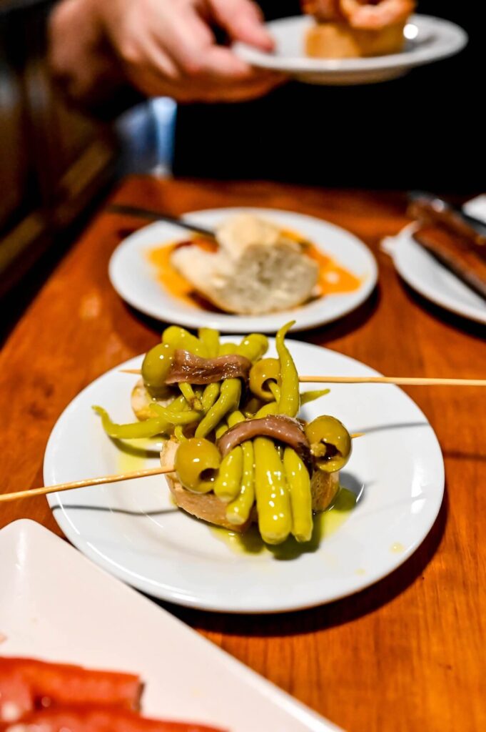 The nice thing about eating here is that you can get dishes in pintxo size, 1/2 portion (medium), or a full portion. Pintxo-sized portions are the best because you can try multiple dishes before filling up, especially if you’re sharing with a partner.
