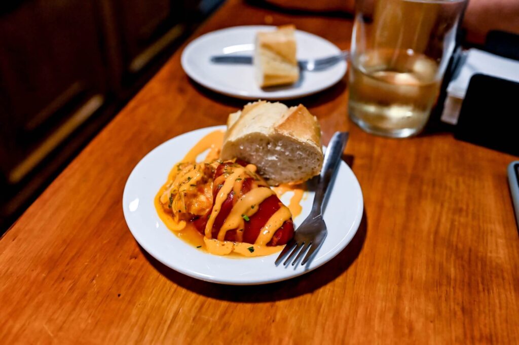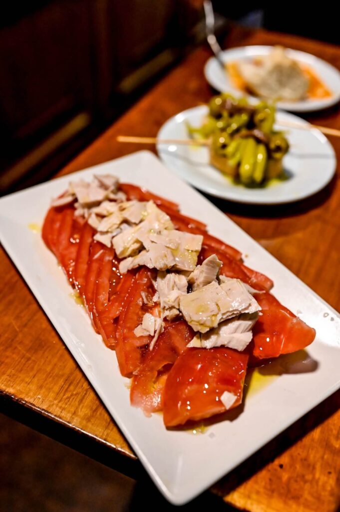 The tomato and tuna plate is a great tapas dish for sharing and they have some of the best bacon wrapped shrimp I’ve ever had! You also cannot go wrong with their Gildas and their creamy txangurro stuffed pepper.