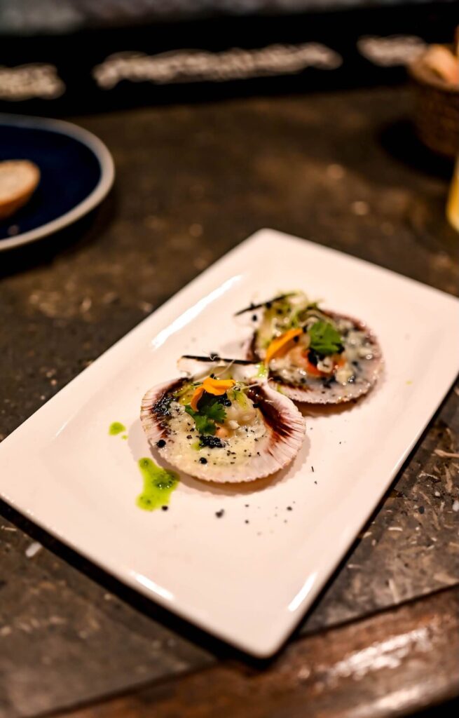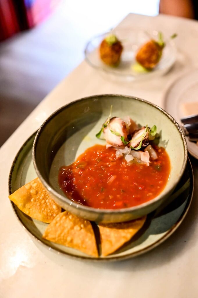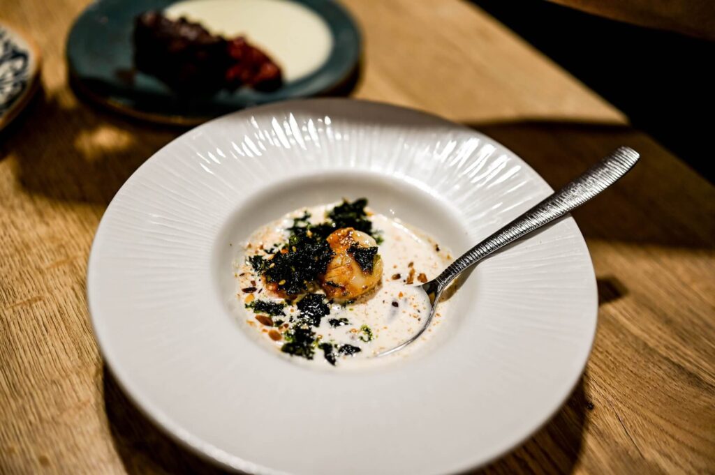 We’ve had their langoustine ravioli, octopus with bacon cream, scallops with truffle cream, and their salty, savory Gildas. Every single bite of food here is magical. My personal favorite is the ravioli – so decadent and creamy. My husband favors the octopus with bacon cream, and their seared scallops with truffle puree are top notch.